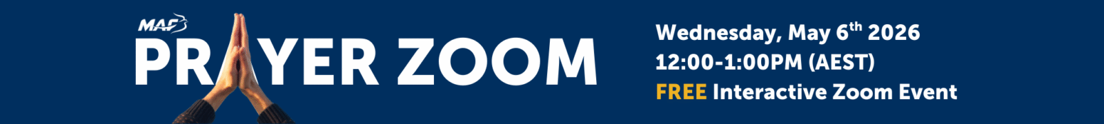 1 March 2026 – As we begin another new month, here at MAF Australia we are focusing on prayer. Prayer sustains us. How can we engage more with our prayer supporters? How can we encourage more people to join with us in prayer for MAF staff, for those we serve, for people around the world that need the hope of salvation? Please pray with us as we seek to communicate more effectively and open up more opportunities for people to join with us in prayer.